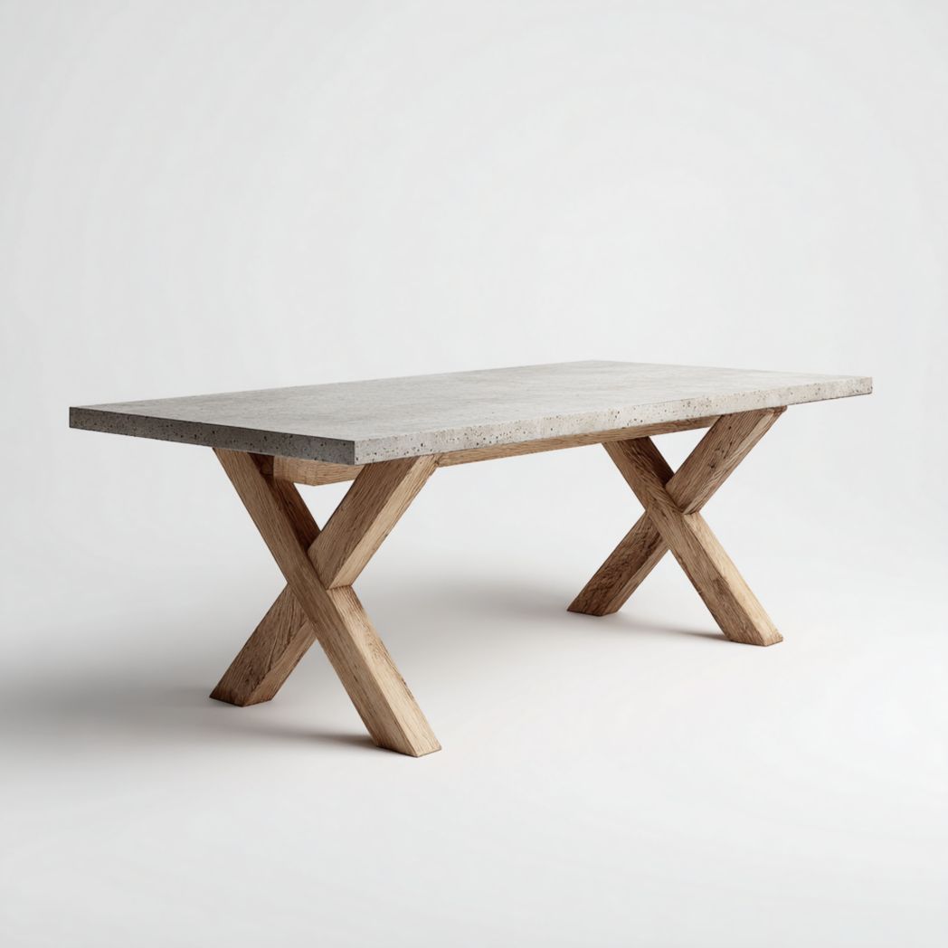 Materiał: Blat z betonu architektonicznego, nogi z litego drewna dębowego