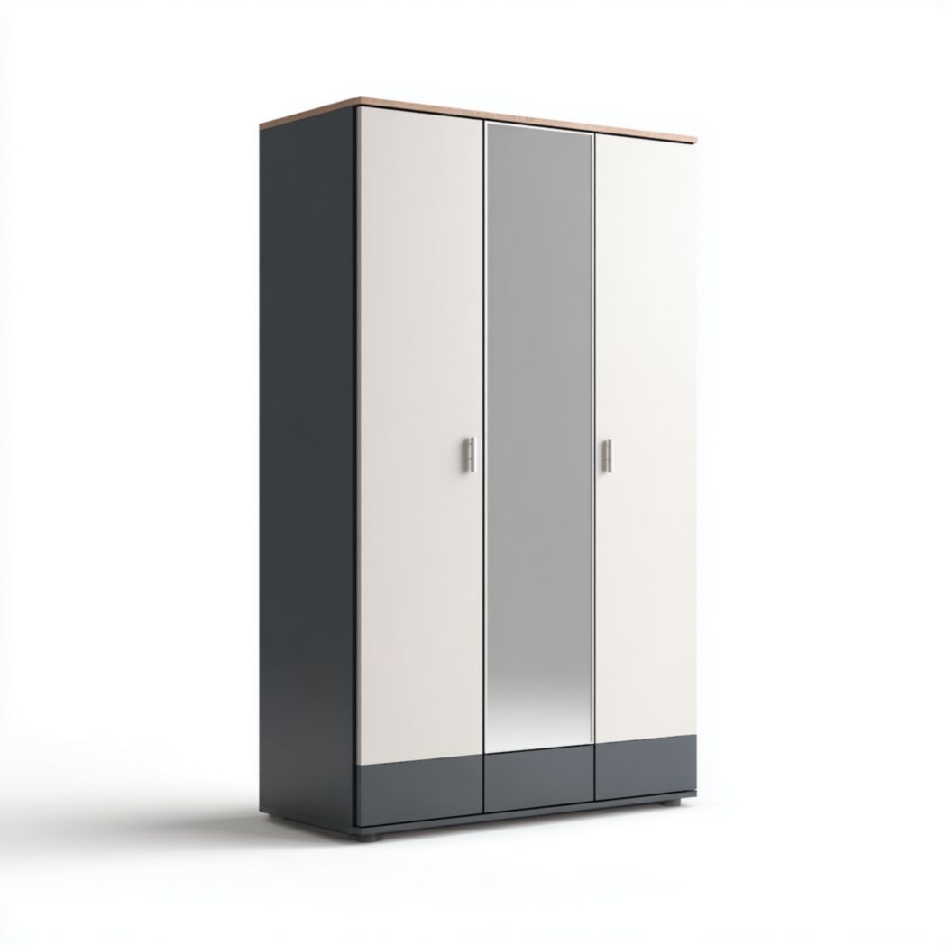 Szafa trzydrzwiowa szaro-biała z lustrem